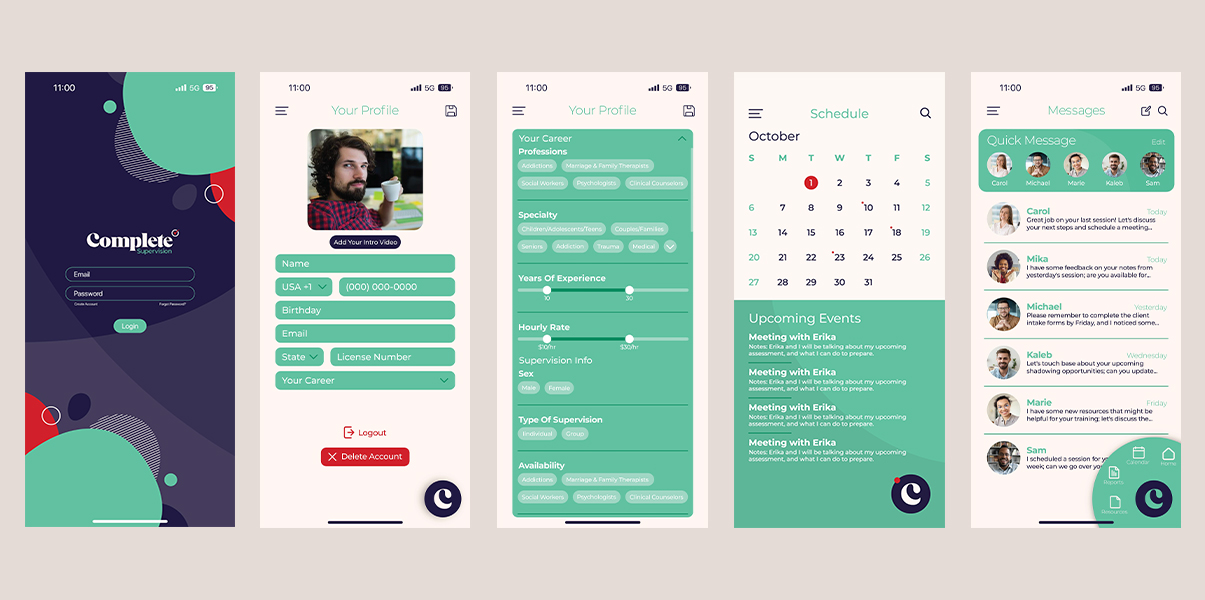 App UI/UX Design: Designed the entire mobile experience for supervisors and supervisees.