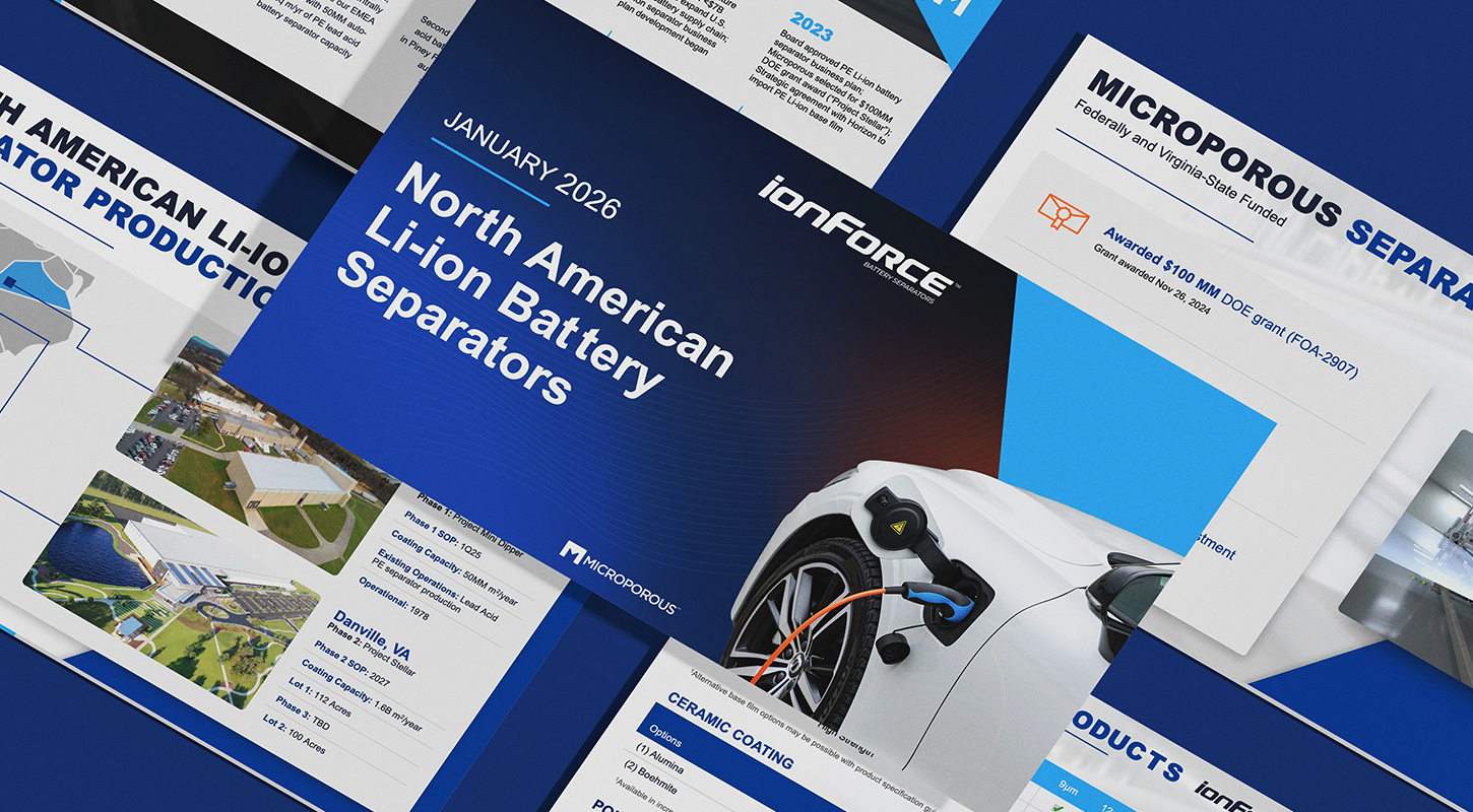 As Microporous secured funding for a new lithium-ion production facility, we supported promotion and execution for a major ribbon-cutting event, creating branded materials and coordinating visibility. We also designed assets for trade shows and supported promotion across social channels.